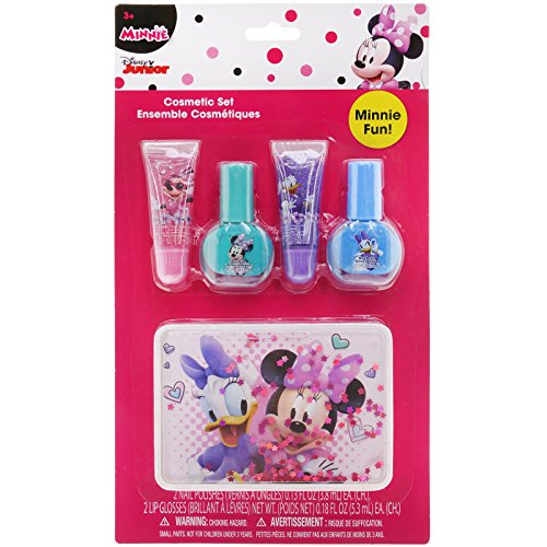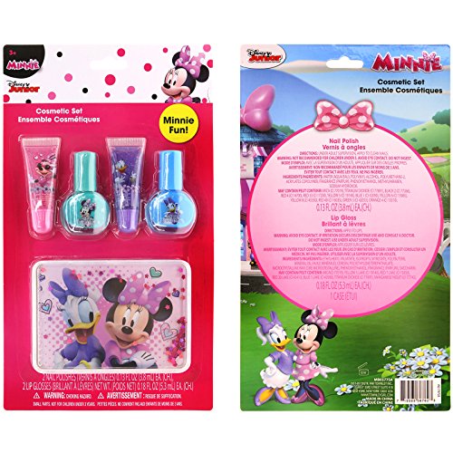-. Feature : BEST COMBINATION OF FLAVORS AND FUN Balms and glosses apply smoothly for moisturizing or glossy look, with two most-loved flavors: Grape and Bubble Gum. / BRUSH ON, QUICK DRY makes these perfect for small fingers and toes. No more worrying about stained furniture, carpet, walls, toys or clothes. Simply peel off dried polish to remove it from nails. / SAFE AND NON-TOXIC Water-based formula makes these cosmetics safe for young girls aged six years old and up, including tweens and teens. / GREAT BIRTHDAY OR HOLIDAY GIFT FOR KIDS Each tube and bottle in this set is decorated with images of Minnie Mouse and Daisy Duck. / GLAM-PACKED LITTLE LIPS AND NAIL SET Includes 2 flavored lip glosses, 2 shimmery nail polish colors and 1 carrying case. Perfect beauty set ready for a manicure or pedicure party.