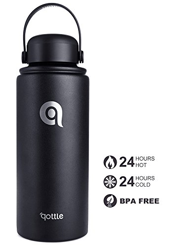 Vacuum insulated: qottle water bottle is double-walled and vacuum insulated. It will keep you drink cold for up to 24 hours or hot up to 24 hours. 32oz super large capacity make sure that you have enough drink throughout the day. Extremely wide opening allow easy filling, pouring and washing