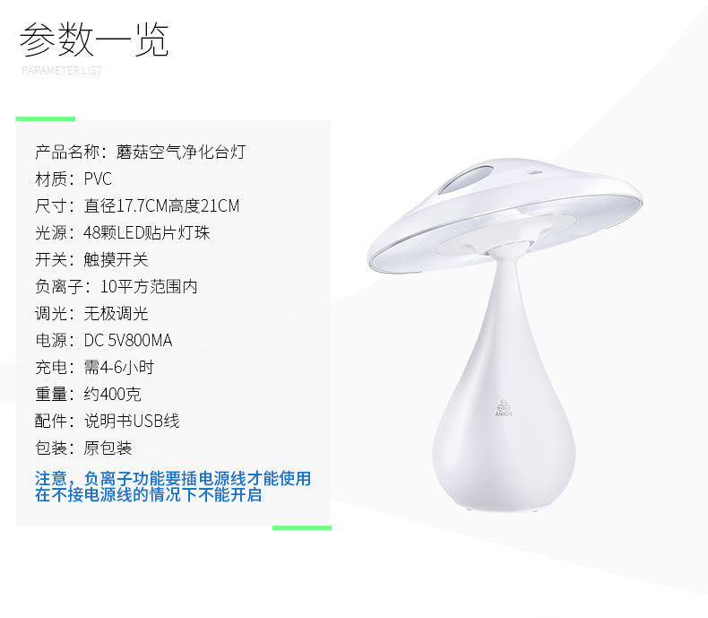 蘑菇空气净化器充电台灯小学生用写字超亮护眼学习卧室床头创意女