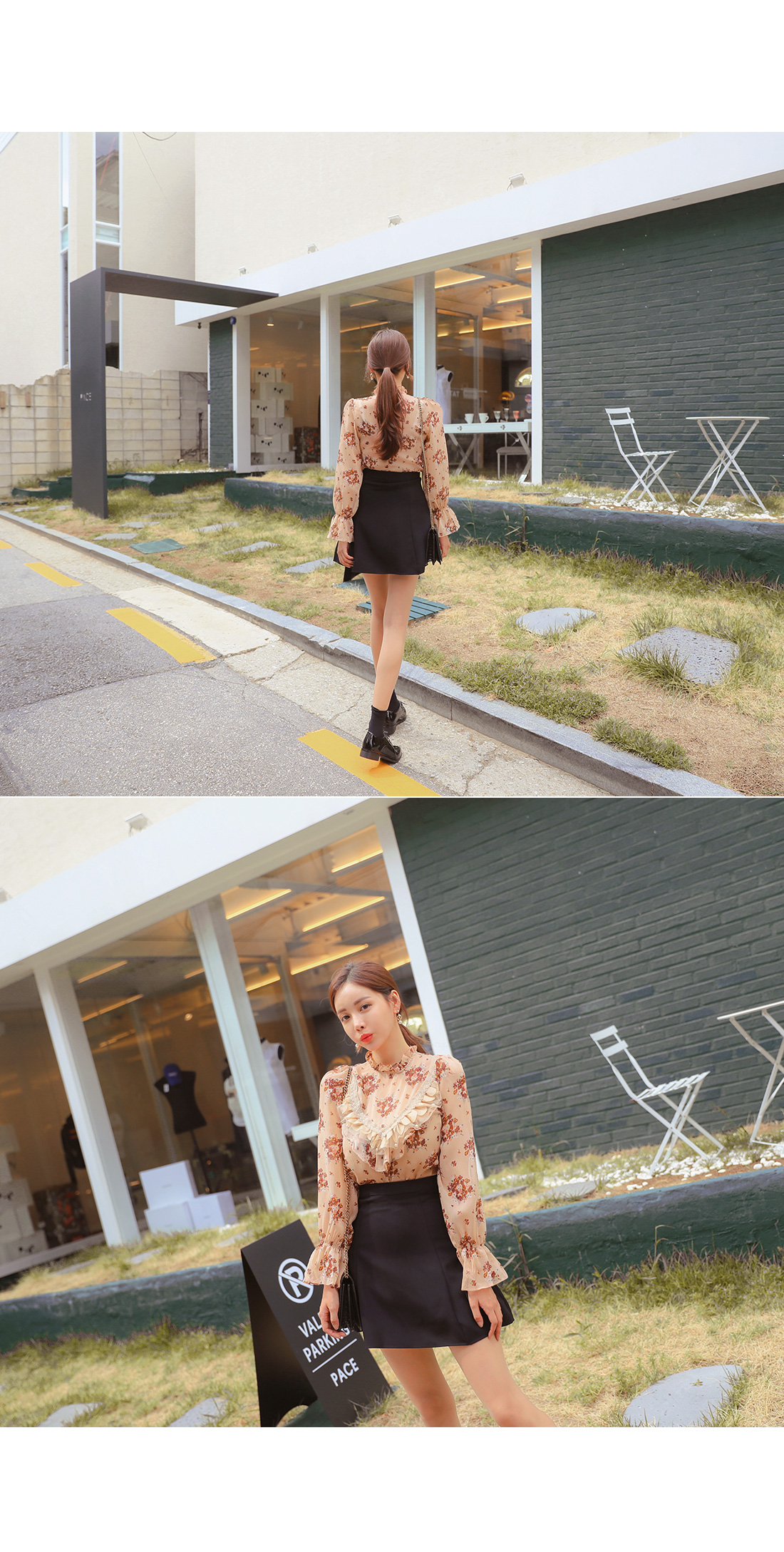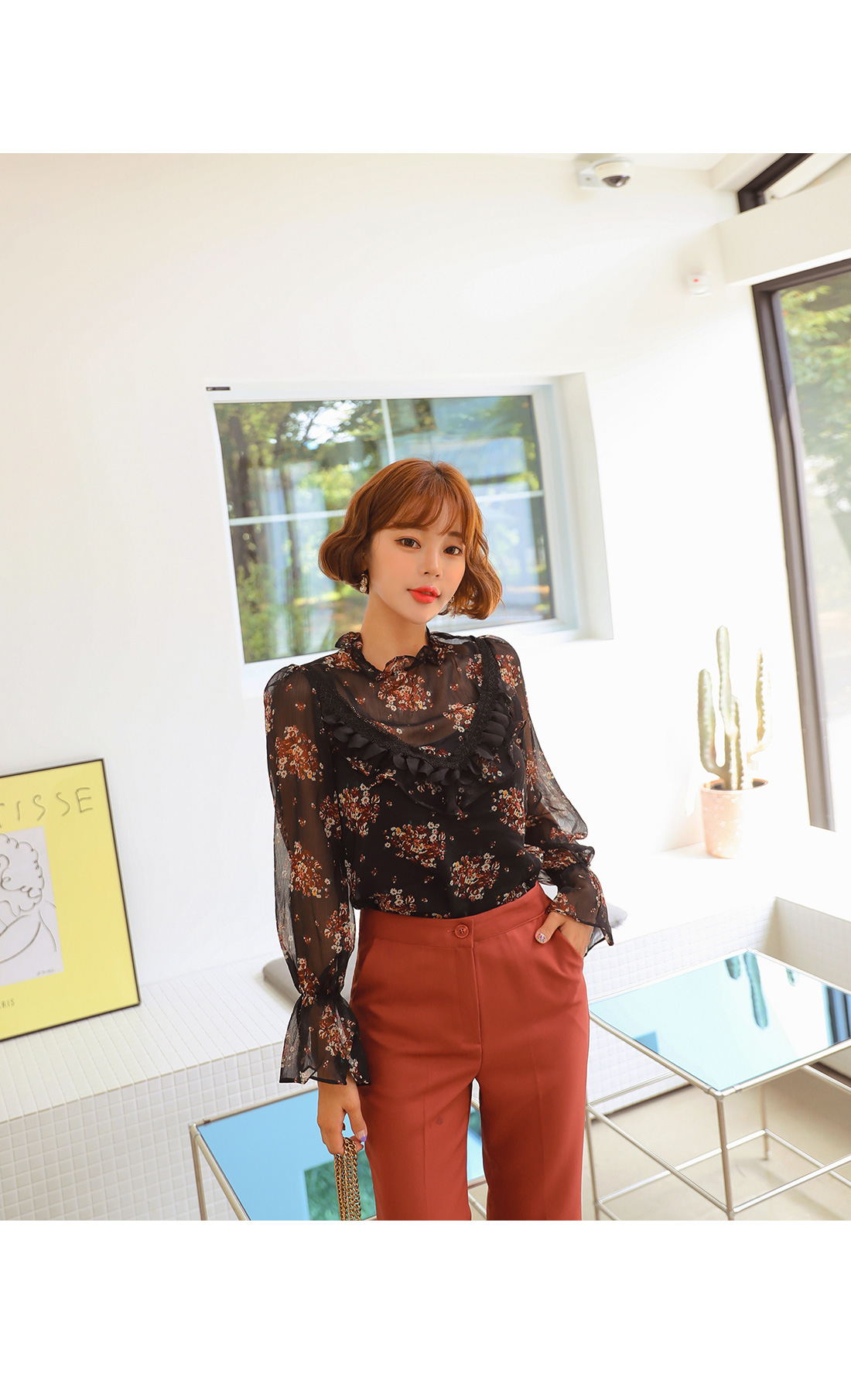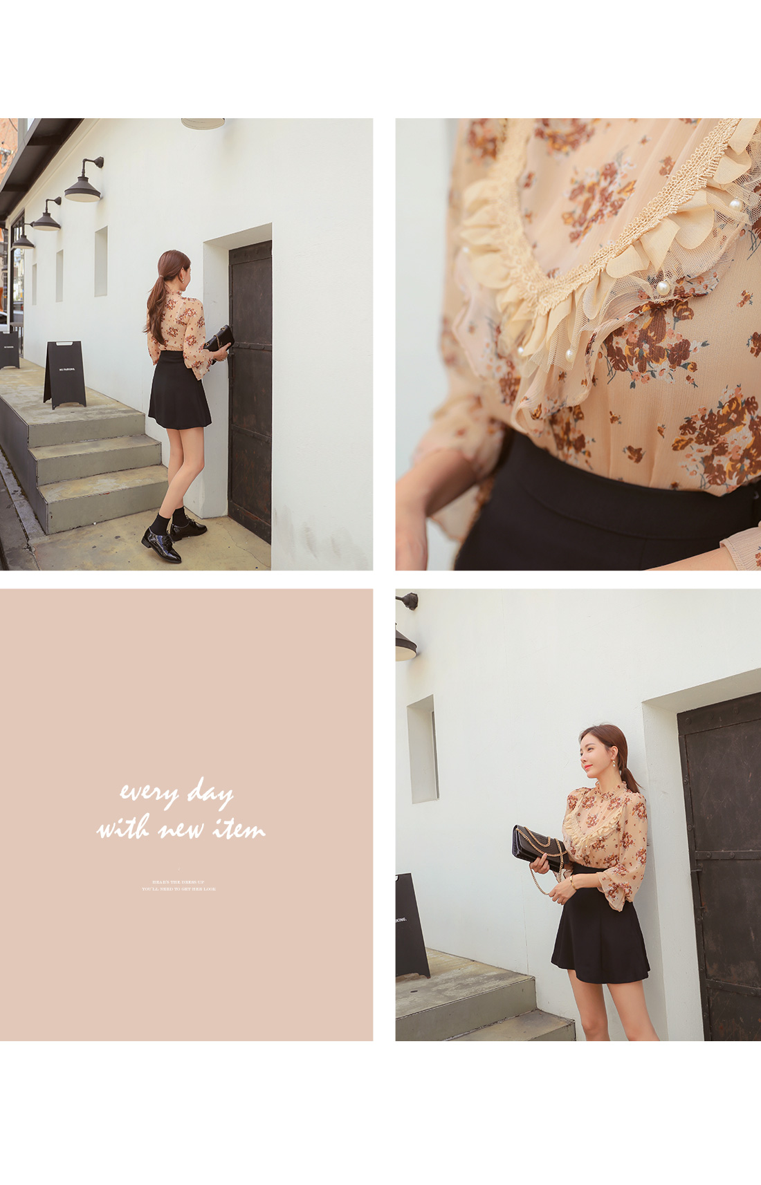 MD COMMENT 살랑살랑 가벼운 쉬폰소재 걸리쉬한 블라우스랍니다 !잔잔한 플라워 패턴으로 분위기 있는 디자인이구요, 여성스러움이 물씬- 느껴지는 블라우스에요^^적당히 여유있는 핏과 기장감으로 부담없이 편안하게 두루두루 즐겨 입기 좋아요.넥라인과 네크라인을 둘러 프릴 디테일로 사랑스럽게 디자인 되었으며넥라인 레이스와 진주로 포인트를 주었어요!전체적으로 잔잔한 주름이 잡힌 소재감에은은하게 비치는 소재감으로 룩에 은은한 포인트는 물론!은근 섹시한 무드도 연출해주었으며가벼운 소재감으로 봄,가을 시즌 두루두루 즐기기 좋을거에요.포인트 있는 디자인에 베이직한 컬러감으로 다양한 하의 아이템과가볍게 매칭이 좋으며 룩에 여성스러움이 가득한 매력적인 스타일을완성 할 수 있는 블라우스 아이템으로 추천할게요!COLOR/SIZE 베이지,블랙FREEMODEL FITTING 베이지,블랙/FREE
