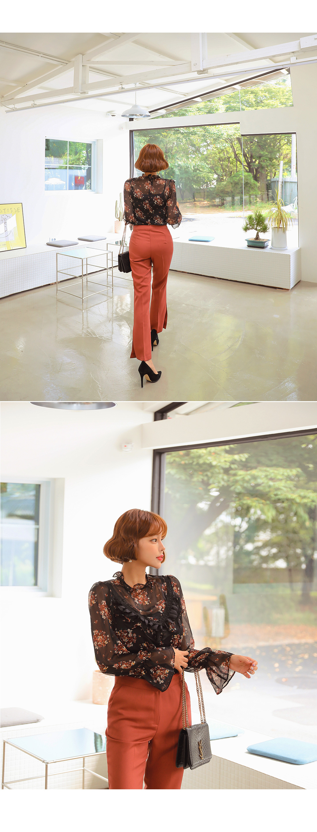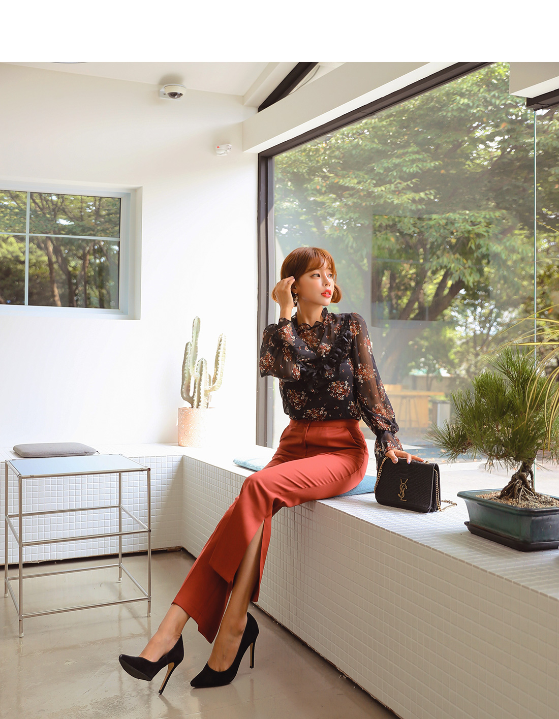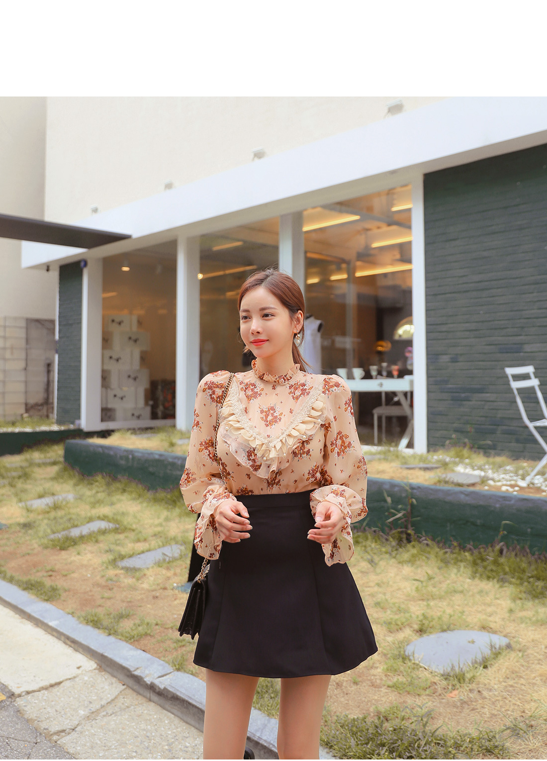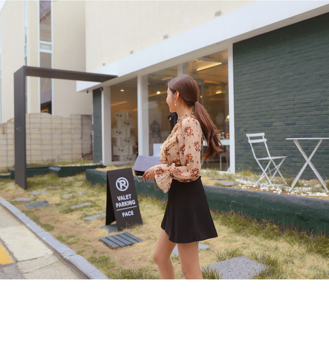 MD COMMENT 살랑살랑 가벼운 쉬폰소재 걸리쉬한 블라우스랍니다 !잔잔한 플라워 패턴으로 분위기 있는 디자인이구요, 여성스러움이 물씬- 느껴지는 블라우스에요^^적당히 여유있는 핏과 기장감으로 부담없이 편안하게 두루두루 즐겨 입기 좋아요.넥라인과 네크라인을 둘러 프릴 디테일로 사랑스럽게 디자인 되었으며넥라인 레이스와 진주로 포인트를 주었어요!전체적으로 잔잔한 주름이 잡힌 소재감에은은하게 비치는 소재감으로 룩에 은은한 포인트는 물론!은근 섹시한 무드도 연출해주었으며가벼운 소재감으로 봄,가을 시즌 두루두루 즐기기 좋을거에요.포인트 있는 디자인에 베이직한 컬러감으로 다양한 하의 아이템과가볍게 매칭이 좋으며 룩에 여성스러움이 가득한 매력적인 스타일을완성 할 수 있는 블라우스 아이템으로 추천할게요!COLOR/SIZE 베이지,블랙FREEMODEL FITTING 베이지,블랙/FREE