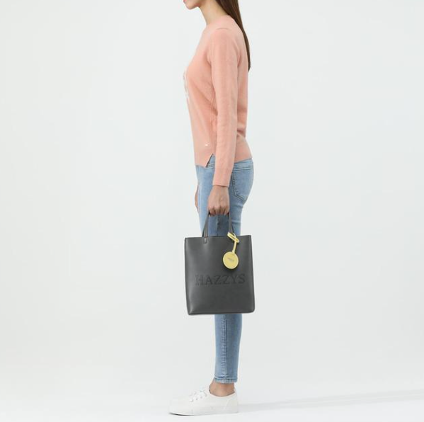 빅 사이즈의 입체적인 로고 레터링 장식으로 포인트를 주었으며 앞,뒷면 모두 활용할 수 있어 실용적인 토트백입니다.