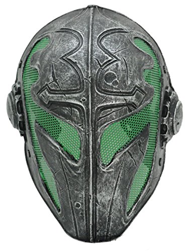 -. Feature : Luxury resin material templar knight style wire mesh mask, tactical stylish looking,One size fit all 29*20cm,Weight;600g / Comfortable cushion pads are located inside the mask,Carefully design to allow space between mask & month for easy breathing,easy to wear helmet, earphone and you can wear glasses inside mask / Mask Goggles comfortable fit and safety for your head/Spider-type 5-point flexible strap with buckle contoured designed at back / Mesh wire goggle lens offer a high protection with clear sight / Perfect for war game, paintball, hunting and military purpose ,durable and withstand high impact