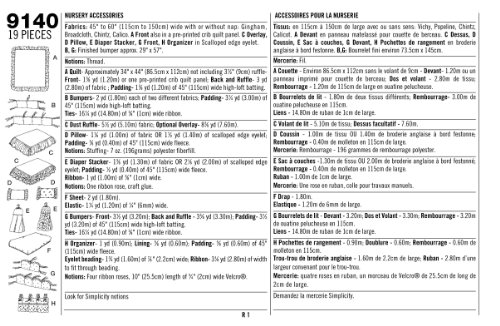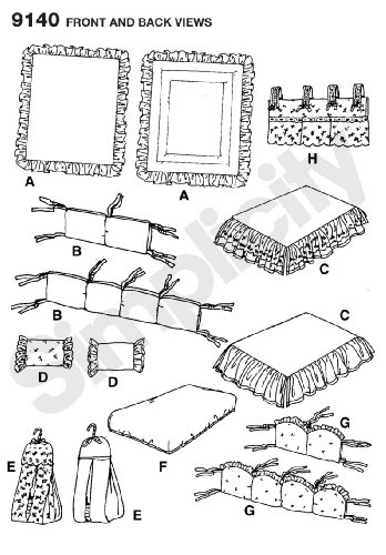 -. Binding : Misc. -. Brand : Simplicity Creative Group Inc - Patterns -. Color : White -. EAN : 0039363237792 -. Feature : SIMPLICITY-Fitted Sheet Dust Ruffle Bumpers Quilt Pillow Diaper Stacker and Organizer / Simplicity sewing pattern / Made in United States / Home decorating in size os (one size) simplicity pattern 9140 / Number of looks included:8 / Instructions are written in english and spanish, and french / Designed and manufactured in the USA -. IsAdultProduct : 0 -. IsAutographed : 0 -. Label : Simplicity Creative Patterns -. Manufacturer : Simplicity Creative Patterns -. Model : 9140 -. MPN : 9140 -. NumberOfItems : 1 -. PackageQuantity : 1 -. PartNumber : 9140 -. ProductGroup : Art and Craft Supply -. ProductTypeName : HOME -. Publisher : Simplicity Creative Patterns -. ReleaseDate : 2011-02-15 -. Size : OS (ONE SIZE) -. SKU : 496188 -. Studio : Simplicity Creative Patterns -. Title : Simplicity Sewing Pattern 9140 Home Decorating, One Size -. UPC : 039363237792