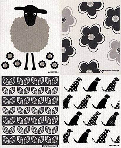 Swedish Dishcloth, Set of 4 Black & Grey (DD)