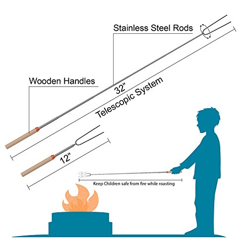 ☑️Safe for You and Family - 32" Long extendable forks keep you and children a safe distance from any patio fire pit, backyard fire pit, bonfire pit, or campfire | Rubber tips on prongs make them perfect for storage and handling around children making them a must have for BBQ accessories