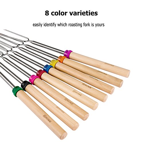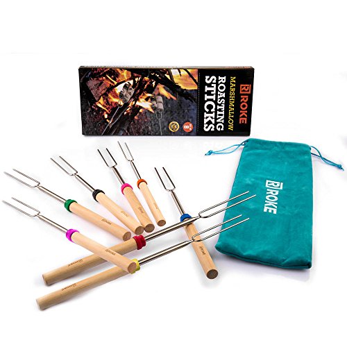 ROKE Marshmallow Roasting Sticks Set of 8 Smores Skewers & Hot Dog Fork 32 Inch Patio Fire Pit Camping Cookware Accessories
