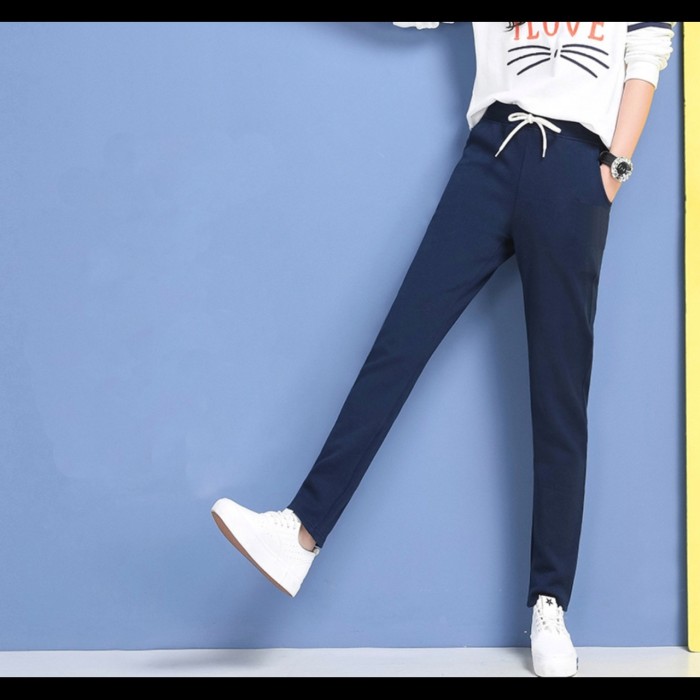 Celana Jogger yang sedang jadi Trenmodel sekarang ini dengan model Simple Basic sekaligus Elegan dengan seleting kantong samping. Juga terdapat kantong di bagian kanan belakang. Terdapat tali di bagian depan (warna dan ukuran tali dapat berubah dari foto, tergantung ketersediaan tali di pasaran).
