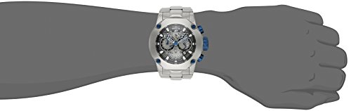 -. Feature : Round watch in silver-tone finish with mesh-background dial and blue metallic accents at crown, pushers, hands, and bezel screws / 52 mm stainless steel case with mineral dial window / Japanese quartz movement with analog display / Stainless steel bracelet featuring fold-over clasp with safety / Water resistant to 200 m (660 ft)