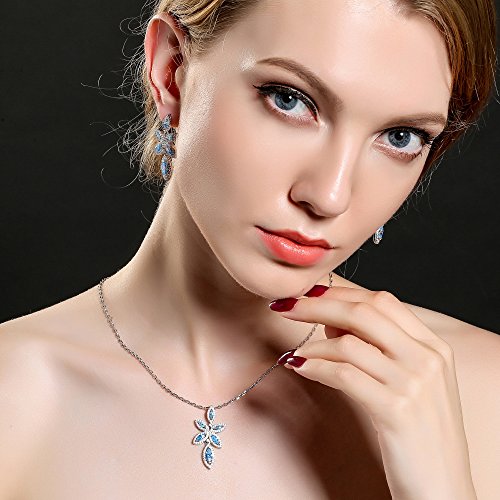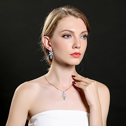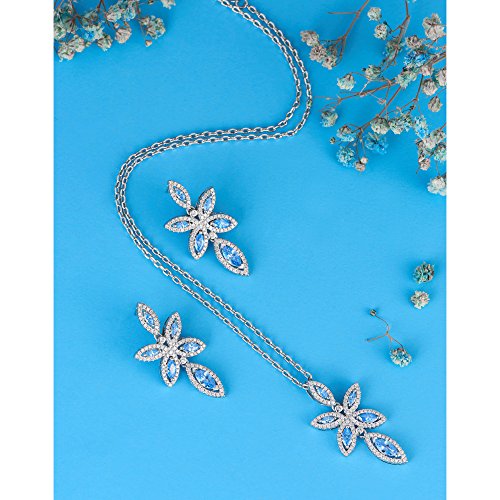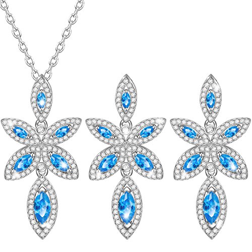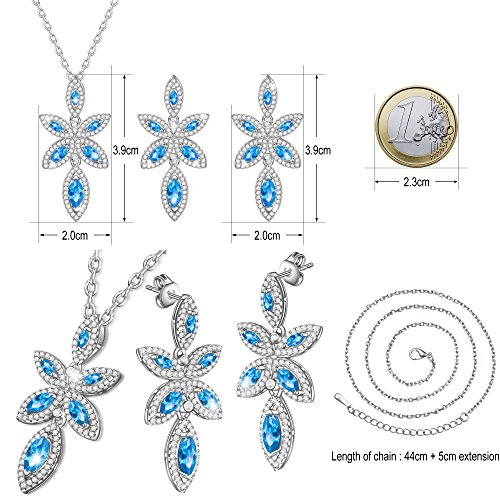 ♦ INSPIRATION & DESIGN: Inspired by nature, elegant and glamorous, this refined set is perfect for festive parties or gift giving. Including a pendant on a chain and a pair of pierced stud earrings, it combines clear crystal pavé, blue pavé, and white gold-plated metal for brilliant sparkle.