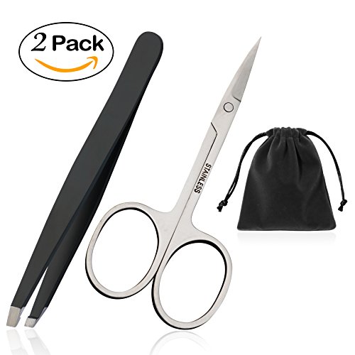 Great gift for or him!– Beautiful black slant tweezer and silver scissor with soft black small drawstring bag.It is perfect as a gift to your love ones.