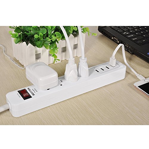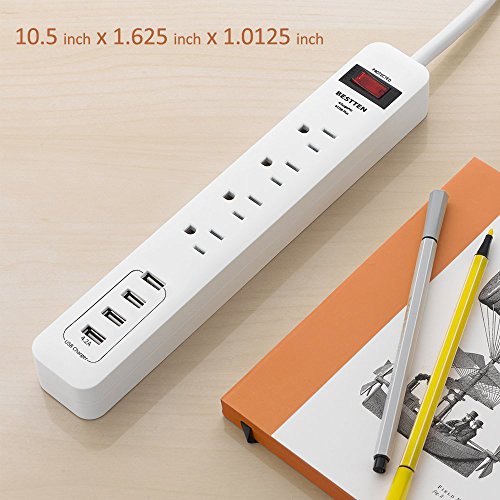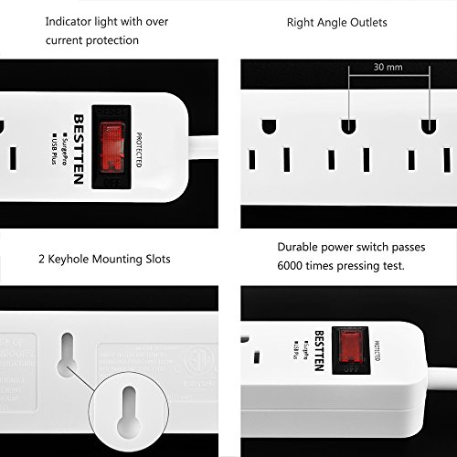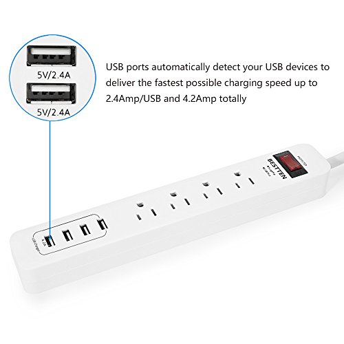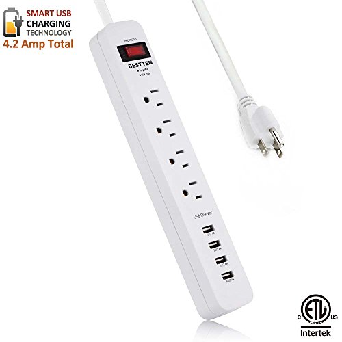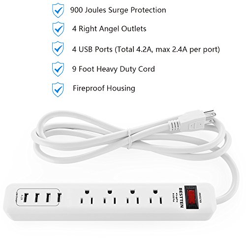 BESTTEN 4 Outlet Power Strip 1875W 15A 900 Joule Surge Protector with 4 USB Charging Ports (2.4A/Port, Total 4.2A), 9 Foot Long Extension Cord, ETL Certified