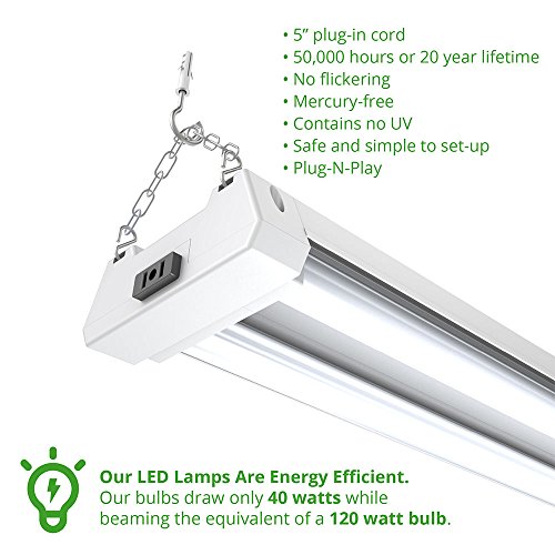 - ✔ BUY WITH CONFIDENCE: 5 YEAR WARRANTY. Reduce re-lamp frequency. One of the highest standard shop lights on the market; Preferred by most contractors and electricians. Guaranteed to have adhered the most demanding quality control procedures. EXCELLENT PERFORMANCE