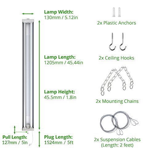 - ✔ BENEFITS: Sunco's LED Shop Light is designed using incomparable material and has a lifetime of 50,000 hours. With our INSTANT ON feature, you never have to worry about flickering. The light is MERCURY FREE and contains NO UV, making it safe for the home and environment. All purchases come with an instructional manual for easy, simple and fast installation. Surface & Suspend Mount. Plug-n-Play, 5’ plug-in cord, no wiring needed. 18.5” pull cord switch. NO humming sound.