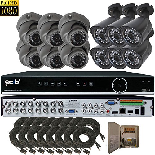 CIB Security H80P16K2T5603G-12KIT 16CH 1080P DVR, 2TB HDD & 12x2.1-MP 1920TVL Night Vision Camera, 6XDome, 6XBullet, White