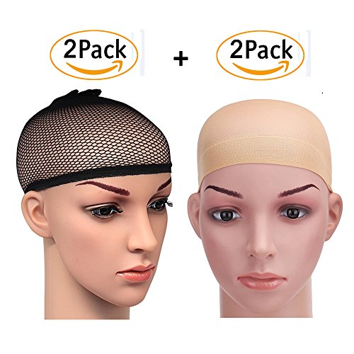 - You can have two kinds of wig caps in one time. 2 pieces nylon wig caps and 2 pieces open end black mesh net wig caps