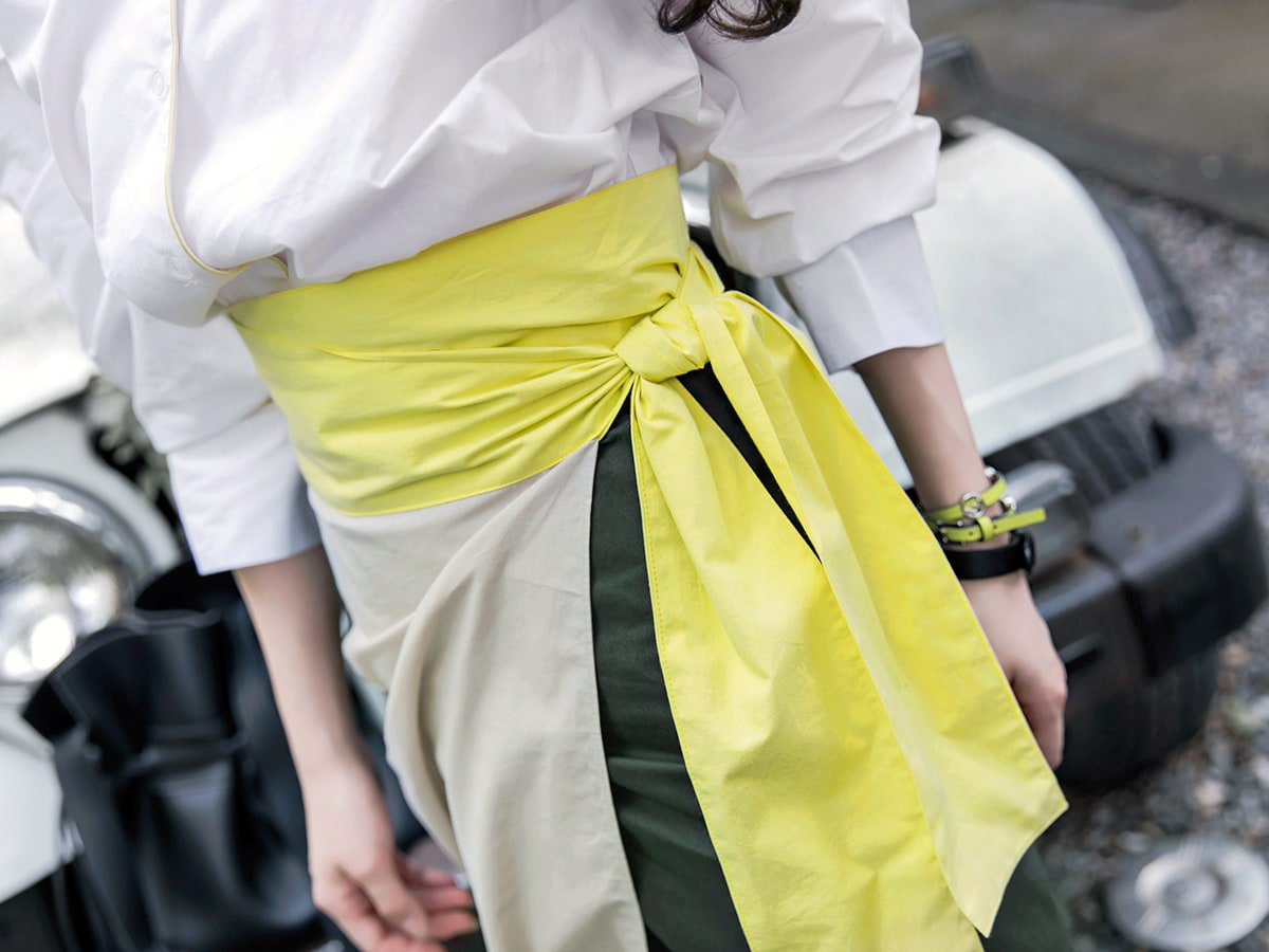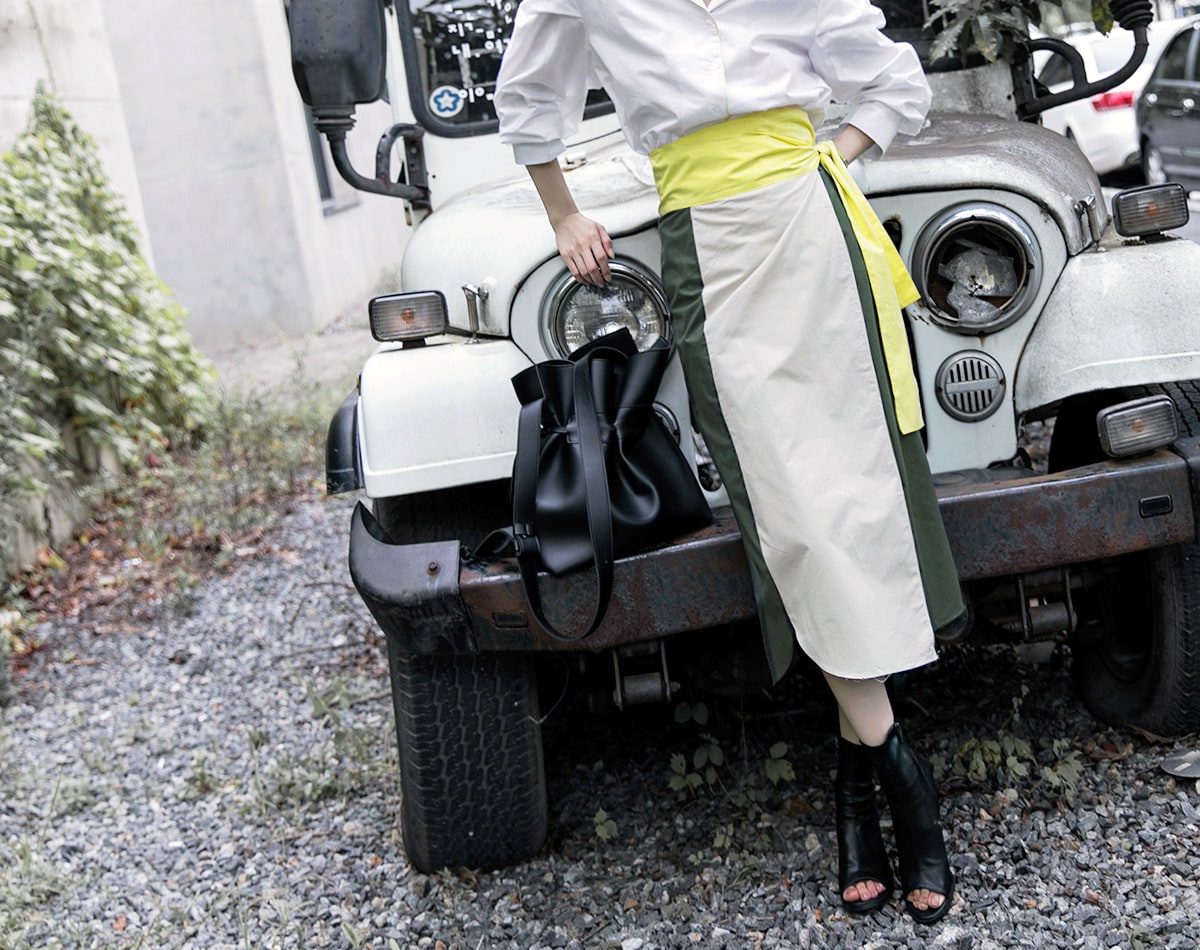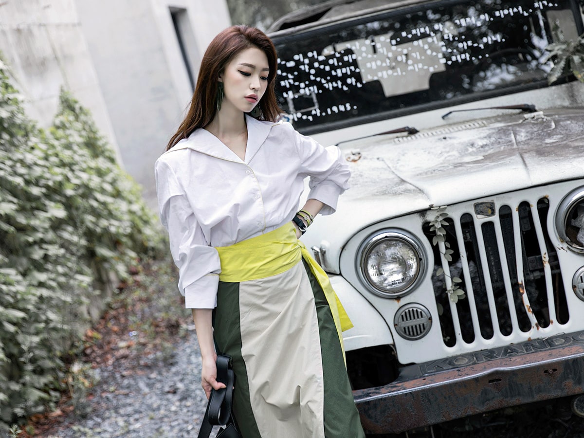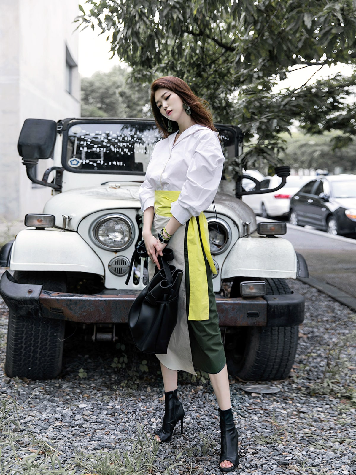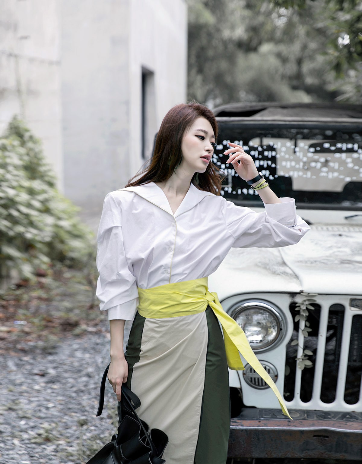 SK1770 유니크 배색 랩 언발 스커트 Khaki mix