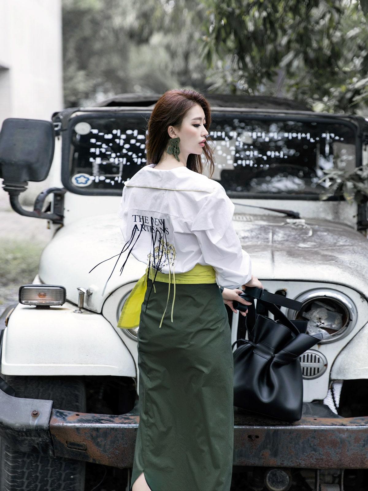 B2317 백 라인 일러스트 수술 블라우스 Ivory