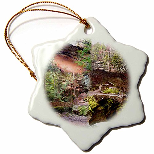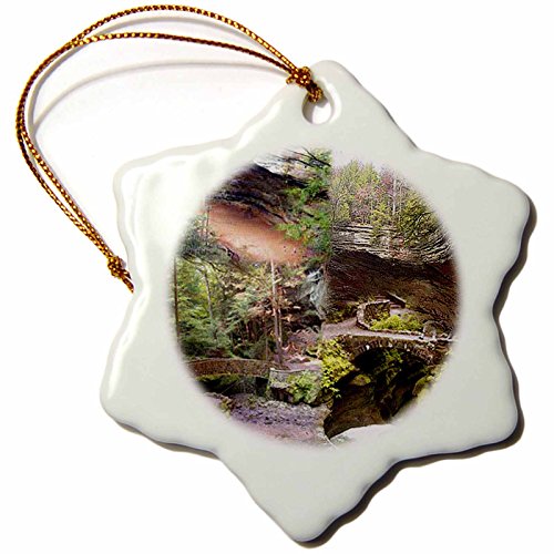 3dRose orn_61691_1 Ash Cave and Old Mans Cave in Hocking Hills State Park Collage-Snowflake Ornament, Porcelain, 3-Inch