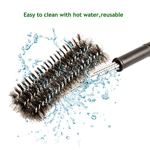 STAINLESS STEEL BRISTLES for all around removal of burnt-on residue, and safe cleaning of all grill types without damaging or scratching steel, porcelain or ceramic grill grates.