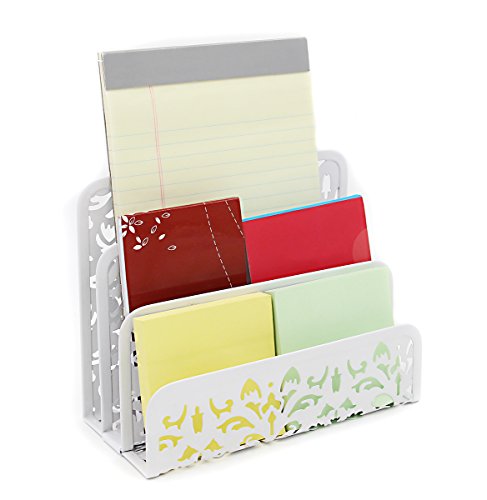 EasyPAG Carved Hollow Flower Pattern 3 in 1 Desk Organizer Set - Letter Sorter , Pencil Holder and Stick Note Holder ,White