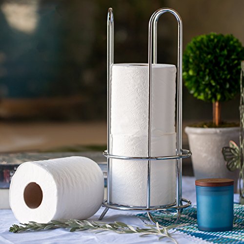 HUJI Chrome Finish Modern Design Toilet Paper Roll Bathroom Holder Rack Storage Canister Space Saver (1, Toilet Paper Holder)