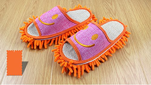 Moolecole Microfiber House Floor Cleaning Mop Slippers Detachable Mopping Shoes Cleaning Tool Fits Womens Size 5.5-8 Orange