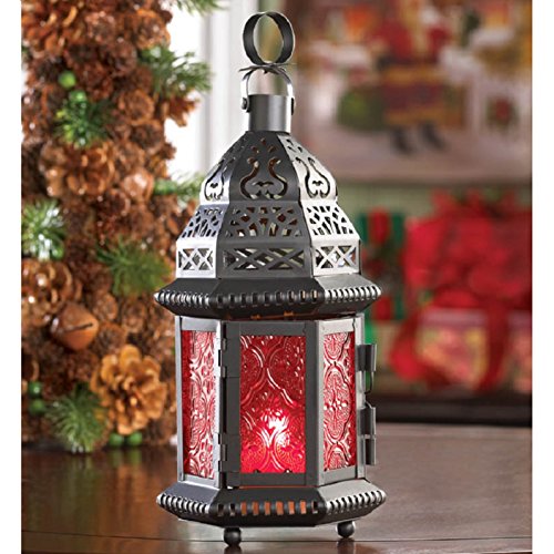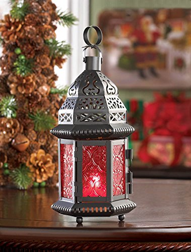 -. Binding : Kitchen -. Color : Red -. EAN : 0849179010522 -. Feature : Deep Red Pressed glass Panels and Black Decorative Metal Frame / Bottom of this Lamp Features Round Feet for Better Protection Against Scratches / Lantern Holds One Votive Or Tealight Candle, Not Included / Overall Size is 4½" Width x 3¾" Depth x 10¼" Height / One Lot Equals 16 Red Glass Moroccan Lanterns -. Label : Malibu Creations -. Manufacturer : Malibu Creations -. Model : 10013245 -. MPN : 13245 -. PackageQuantity : 16 -. PartNumber : 13245 -. ProductGroup : Home -. ProductTypeName : HOME -. Publisher : Malibu Creations -. Studio : Malibu Creations -. Title : Malibu Creations 13245 4-1/2" X 3-3/4" X 10-1/4" Red Moroccan Candle Lantern -. UPC : 849179010522