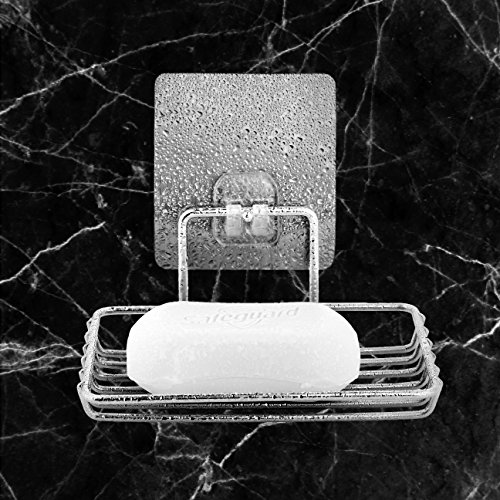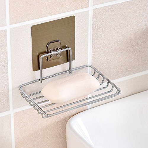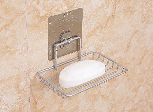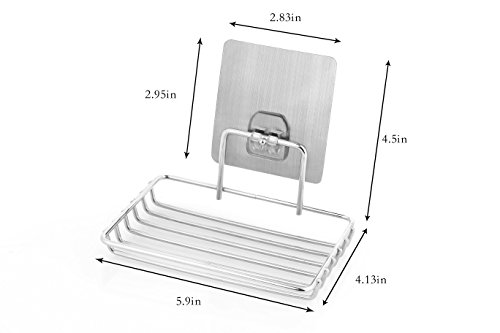 -. Feature : MATERIAL: Soap saver tray is stainless steel. easy to clean, guarantees your shower soap holder stays problem free / EASY TO INSTALL: Soap dish for shower self adhesive,no drilling,no screws,no fell off,will not damage your bathroom wall, Strong and sturdy / WATERPROOF,KEEPING DRY EVENLY: The soap holder for shower Self-draining design keeping your soap bar dry evenly at the bottom / POWERFUL STICK DESIG: No more Drilling/screwing/making holes, this sticker can hold weight load up to 20LB. An ideal soap saver dish for shower/bathroom/kitchen/counter top and more / ATTENTION: Wet and humid environments, soap saver apply to flat, non-porous, smooth or polished surfaces such as glass, mirror, marble walls,tiled walls,polished metal or plastic board etc, not adhere to unfinished marble, porous or rough surfaces(eg porous painted walls), or across grout lines