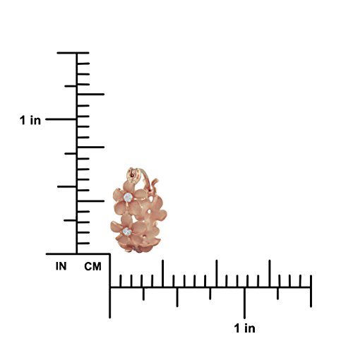 Five 1/4" diameter plumeria make up these darling hoop earrings. Each plumeria is adorned with a single 1.5mm synthetic cubic zirconia which add a little bit of sparkle to the pair. Hoop measures 11/16 inch (0.69 inch) in diameter and 1/4 inch wide. 14kt rose gold plated sterling silver.