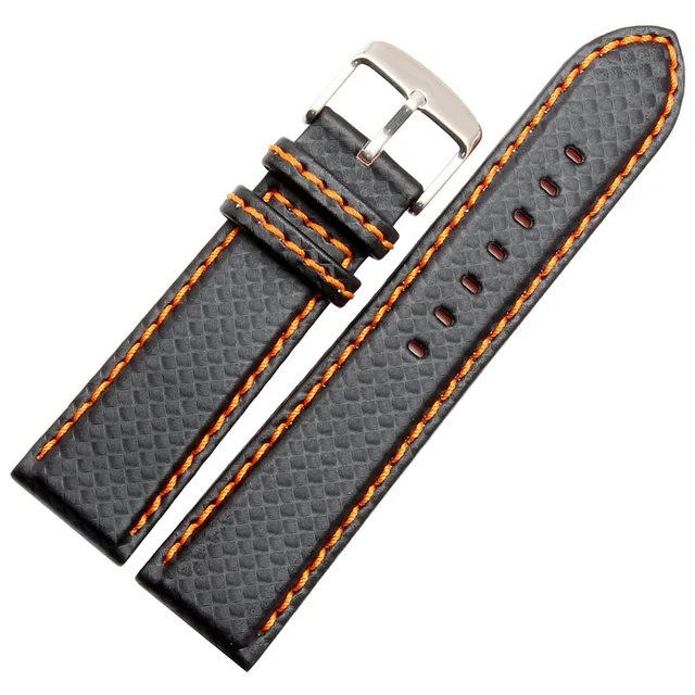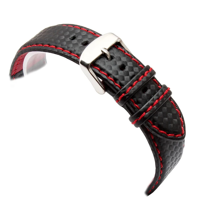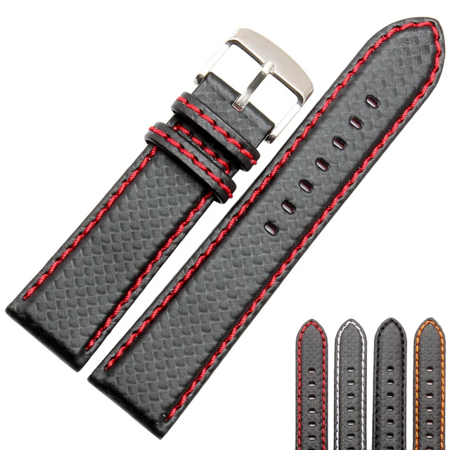 18 미리메터 20 미리메터 22 미리메터 24 미리메터 블랙 레드 바느질 탄소 섬유 가죽 시계 밴드 스트랩 스포츠