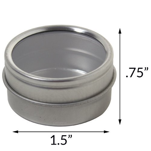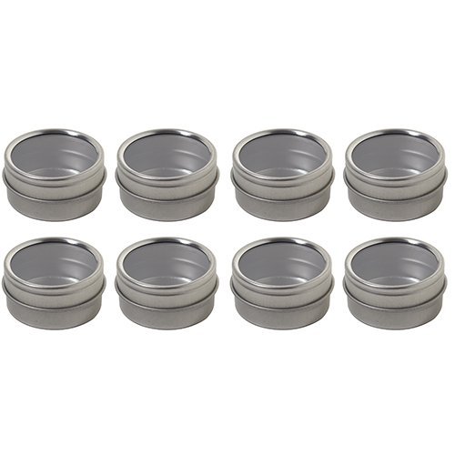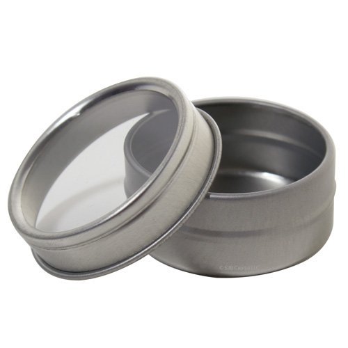 Silver Metal Steel Tin Flat Container with Tight Sealed Clear Lid - .50 oz (8 Pack)