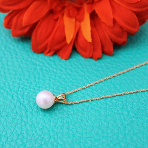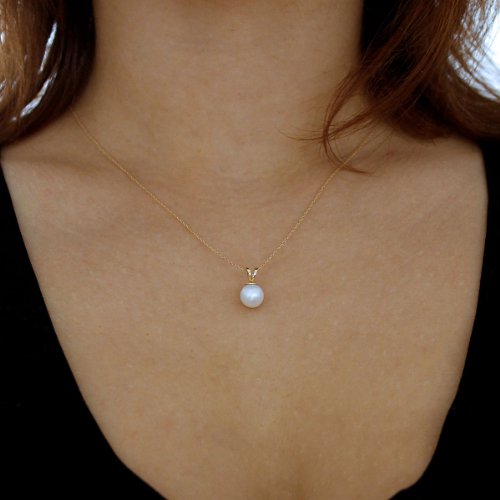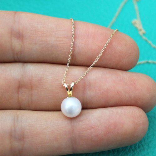 - Feature : This necklace is made of solid 14k gold and genuine freshwater white pearl. Available in white or yellow gold. / Necklace is 1 mm thick, available in: 13, 15, 16, 18, 20 or 22 inches long or just a pendant without chain (choose 0" option in dropdown menu). / Chain has spring-ring clasp. Both chain and pendant are stamped 14k. / Comes with a gift box and free shipping.