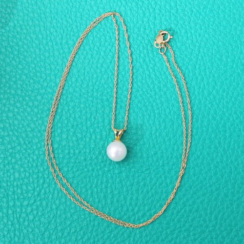 - Title : 14k Solid Yellow Gold 8mm White Pearl Pendant Necklace - 16"