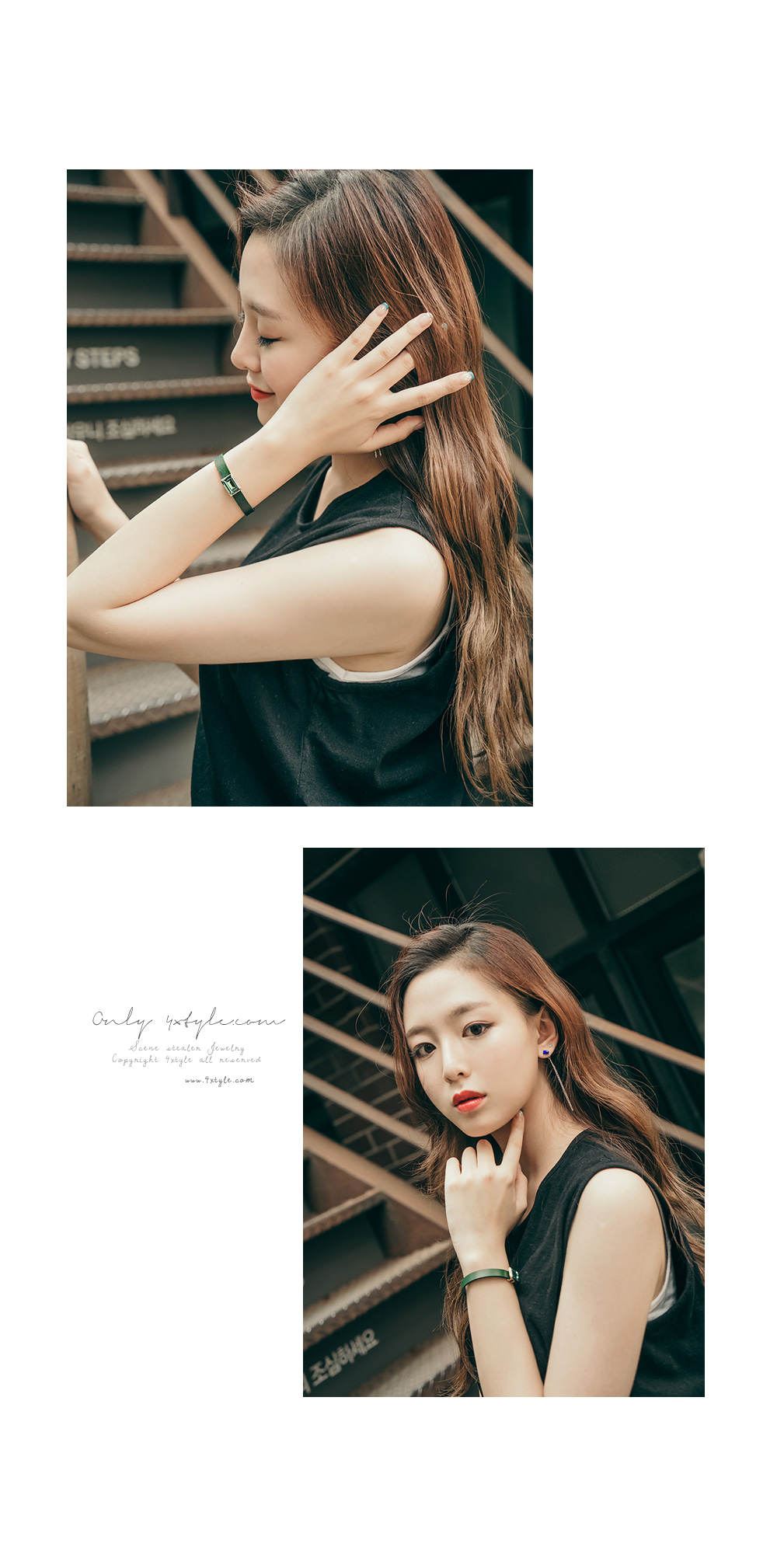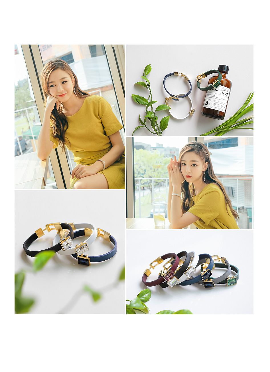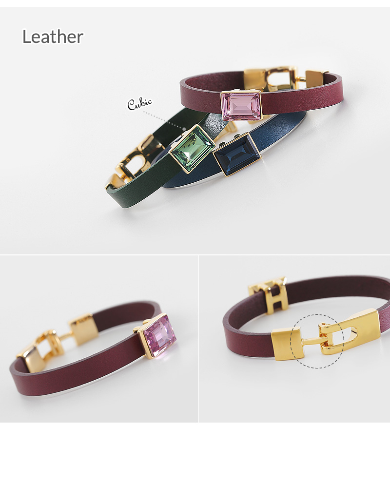 컬러풀한 스퀘어 큐빅으로 세련되고 유니크한 가죽팔찌.