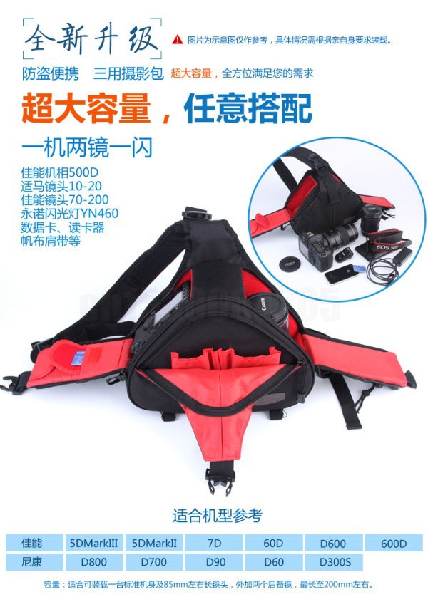 1 x DSLR + 1- 2 x extra lenses + accessories .(samples shown as above)