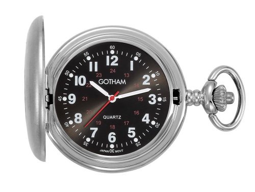 -. Title : Gotham Men's Silver-Tone Satin Finish Covered Quartz Pocket Watch # GWC15043SB