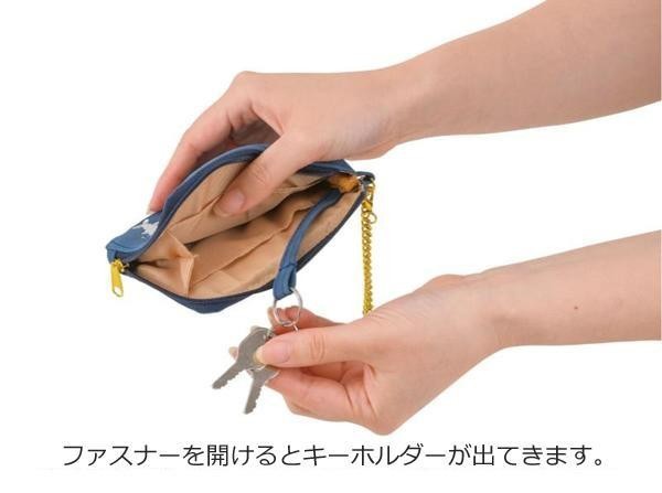 ゆるくて楽しい雰囲気の、ユニークなキャラクターの刺繍がかわいいパス&キーケースです。ファスナーを開けるとキーホルダーが出てきます。大事なカギはファスナーの中に入れられるのでとっても安心なのもポイントです。 |