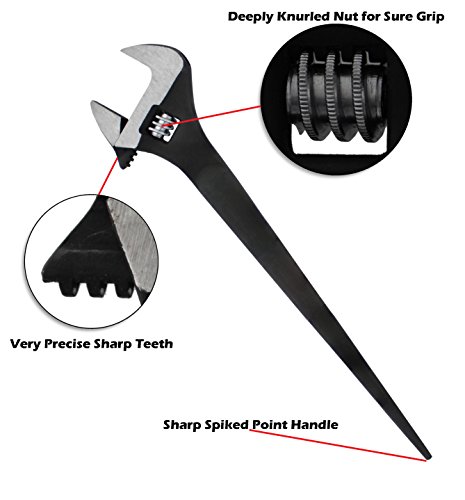 ✓ DESIGN: The Spike Handle is a straight continuous taper all the way up until it transitions into an adjustable wrench for bolt alignment - Perfectly perpendicular and smooth Jaws - Knurled Wheel turns smoothly for easy operation.