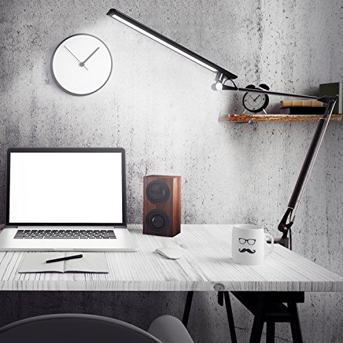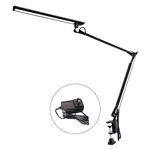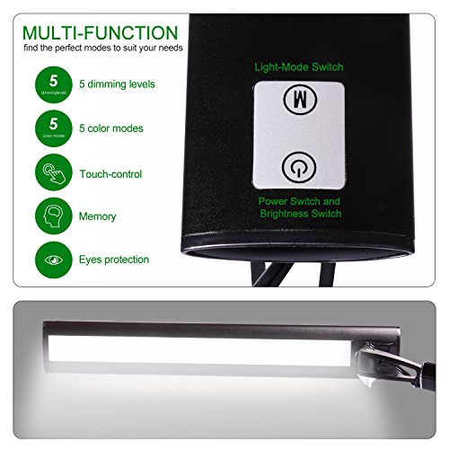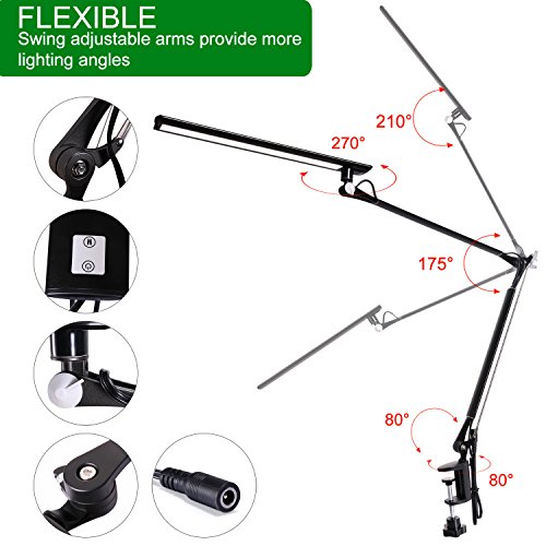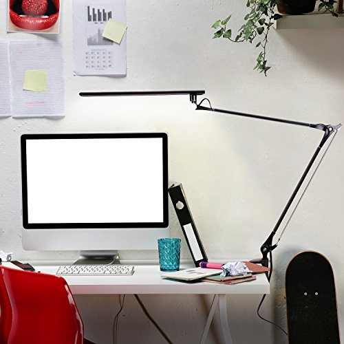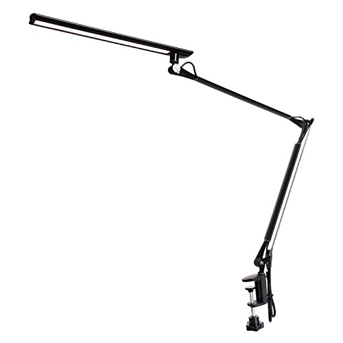 Swing Arm Desk LED Lamp,Architect,10W with Clamp,Dimmable Eye-caring Task Lamps, 5 Brightness Levels, 5 Color Modes, Rozky,Touch Control, Memory Function,Clip Light,Reading Light,Table Lamps, Black