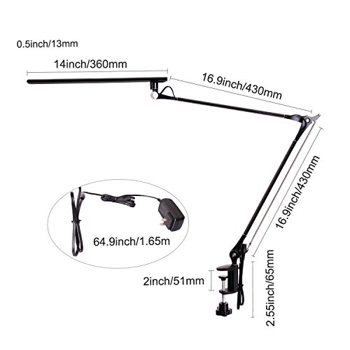- ★Material: High quality Aluminium alloy + Zinc Alloy material to make our products most strong when you adjust and rotate angle; Strong clamp can be adjusted up to max 2inch; 2 connected 17 inch long architect metal swing arms; 65 inch length high quality electric wire;
