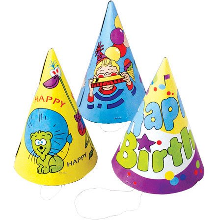 Dozen Assorted Happy Birthday Design Paper Party Hats With Chin Straps