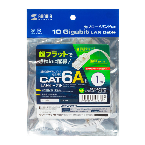●超フラット高弾力PVC製ケーブル、ツメ折れ防止カバー付き、10Gビッイーサネットにも完全対応のCAT6AフラットLANケーブル。