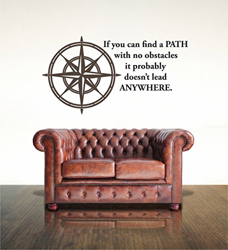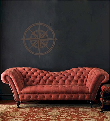 Large Compass & Quote Wall Decal Peel & Stick Removable Room Decal Vinyl Sticker Saying to Decorate Home (Brown & Black, 29x35 inches)