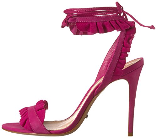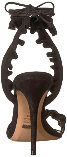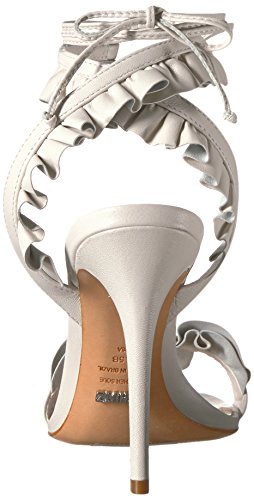 Product DescriptionSingle strap heeled sandal with ruffle detail and wraparound tie closure0