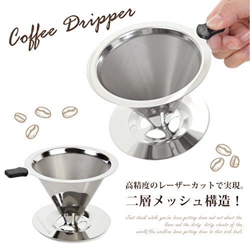 【 아로마가 향기가 난다 】2층의 고품질 스테인레스 소재를 채용 하고 있습니다. 고정밀도의 레이저 컷 필터와 메쉬 필터를 2중으로 하고 있습니다. 이것에 의해 직접 커피분을 넣고 추출이 가능하게 되 있습니다.이것으로 갑자기 페이퍼 필터를 다 써 구매로 달리는 것도 없어집니다!또한페이퍼 필터와 차이 커피 독자적인 오일을 흡수 하지 않는이 나와 다랑어《》라고 했 풍미가 있는 커피를 즐거움 하실 수 있는. .【 지갑에 친절하다 】2층의 스테인레스 레이저 컷 메쉬 필터를 채용 하는 것으로 종래의 페이퍼 필터는 필요 없습니다.런닝 코스트를 억제되기 때문에 경제적입니다. .【 자연을 지킨다 】페이퍼 필터를 사용 하지 않는분 환경에 친절하고, 또한 이산화탄소의 배출을 억제합니다. .【 재질 】스테인레스(304)고, 손잡이:수지【 크기 】외지름13.5cm *안쪽 치수9.5cm *높이8cm 받침대10cm .【 느긋하게 차분히 추출 】포트 또는 컵에 본 상품을세트하여 커피분을드리퍼에 만들어 넣음(담는 그릇·상자 등) 평탄하게 울리고, 80℃?83℃의 뜨거운(더운) 물을 한가운데에 조용히 따라 주십시오.본 상품의 특성으로서 빠르게 추출되기 때문에,느긋하게 차분히 뜨거운(더운) 물을 쏟아져 주십시오.또한 원두커피의 만게 되 눈(째)는 평소보다1단계?2단계 정도 가늘게 만있 커피의 짙음을 조정해 주십시오.사용 후는 커피분을 스푼 등으로 내어 중성세제를 적당량 사용하여 스펀지에 씻어 주십시오. .