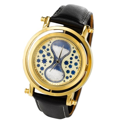 -. Feature : Warner Bros. Pictures Certificate of Authenticity / 1 1/2 inch dial face. Watch comes in a box with Harry Potter logos. / The center face of the watch spins on its axis / Crystal filled hourglass / Genuine leather strap and Embossed HogWarts Crest in gold finish