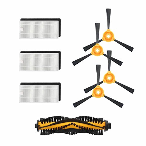 - The kit includes 3 sets of High Efficiency Filters, 4 Side brushes, 1 main brush