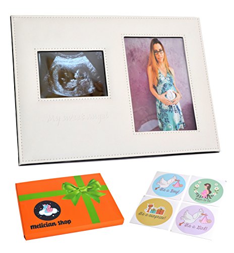 We all know the joy of having a baby. Most of the times, this is the best moment of your life. With this great joy comes great responsibility and of course... you want to make this big time when announcing it to your friends and family. What other great way of telling this to the new grandma and grandpa than giving them a sonogram keepsake frame? The best part that comes with the Melician Shop ultrasound picture frame is the place for the second photo . Right next to the sonogram you can put a medium picture of yourself holding one of the 4 bonus stickers on your belly. This way they will know if you have a baby girl, a baby boy or if you want to keep it a surprise for the next few months. Imagine the look on your mom and dad's face when they unpack the gift. This is by far the best way to create a huge surprise without using any words. We made sure the design of our product helps you create that magical moment. The white leather was carefully attached to the frame to amplify the purity of this moment for you. Under the cutest sonogram in the world, you will have "My sweet angel" embossed. If you're not in this scenario yet, but you are invited to a dear friend expecting a baby - use the Melician Shop Ultrasound Picture Frame as a baby shower gift . It will make a great present and believe me: they will never have enough of these. This is a great grandma gift. Its only purpose is to keep alive the memory of your first contacts with your baby and to share this joy with others. We crafted it with a support on the backside so you can keep it some place where you can see it every single day. It is a beautiful moment in your life and your baby will be impressed years later by this memory of their first stage in life. 0 |
