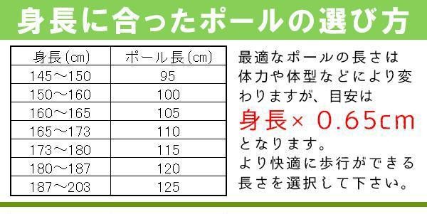 | リハビリや運動不足の解消、トレーニングなど、初心者~上級者まで幅広くお使い頂けるウォーキング専用ポール♪2本のポールを使うことで、初心者でも正しい姿勢が保てます。シャフト素材には丈夫で折れにくいアルミ素材を採用!! |